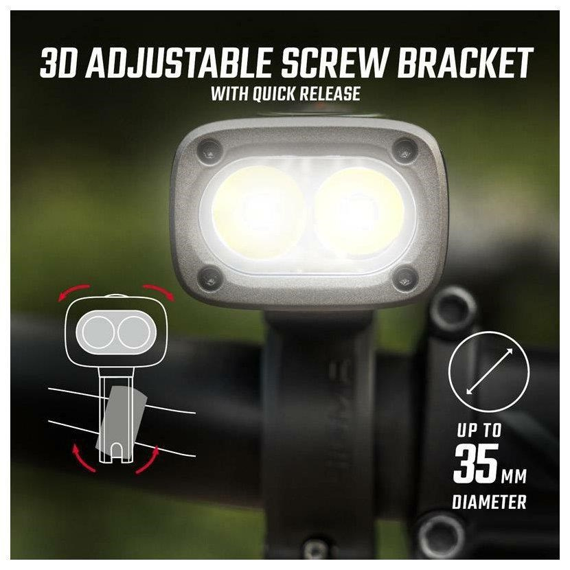 Přední světlo BUSTER 1600 se svými 1600 lumeny a chytrými funkcemi zajistí bezpečnost nočních jízd. Dvě vysoce kvalitní LED diody v kombinaci s inovativní dvojitou čočkou vytvářejí rovnoměrný světelný obrazec, který svítí na 205 metrů. Díky šesti světelným režimům lze nastavit intenzitu světla podle potřeby a umožňit provoz světla až 50 hodin. Díky paměťové funkci se světlo při příštím zapnutí zapne v posledním použitém režimu. Světlo BUSTER 1600 lze dobíjet i během provozu pomocí funkce rychlého nabíjení USB-C.