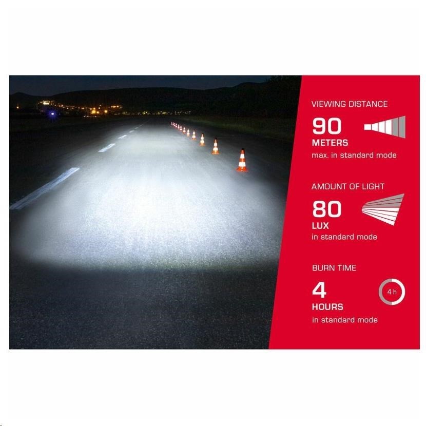 Aura 80 USB s Osram Led pro konstantní světelný výkon má intenzitu osvětlení 80 luxů ve 4 zónách - středové, boční, daleké a blízké. To zabezpečí vynikající viditelnost a větší bezpečnost v silničním provozu.