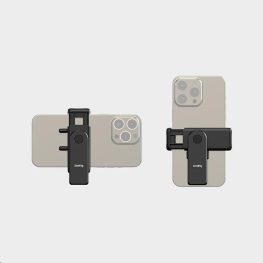 360stupňová rotace držáku umožňuje bezpečné a rychlé přepínání mezi orientací na výšku a na šířku, zatímco duální úchyty cold shoe umožňují připevnění kompatibilního příslušenství.