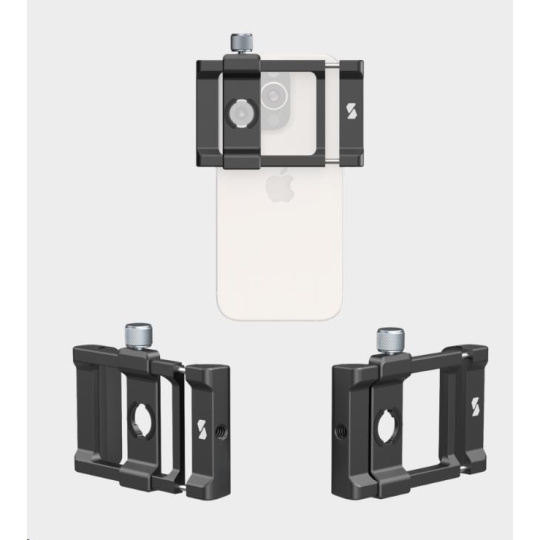 Svorka a adaptér objektivu jsou kompatibilní s telefony iPhone řady 12 / 13 / 14 / 15 / 16 a jsou vybaveny otvory se závitem 1/4"-20 pro upevnění na větší stativy, což nabízí všestranné použití.