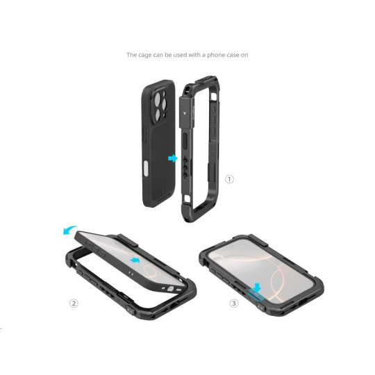 A dedicated mobile video cage for iPhone 16 Pro enables usage with protective phone cases for wide expansion options and all-around phone protection.
