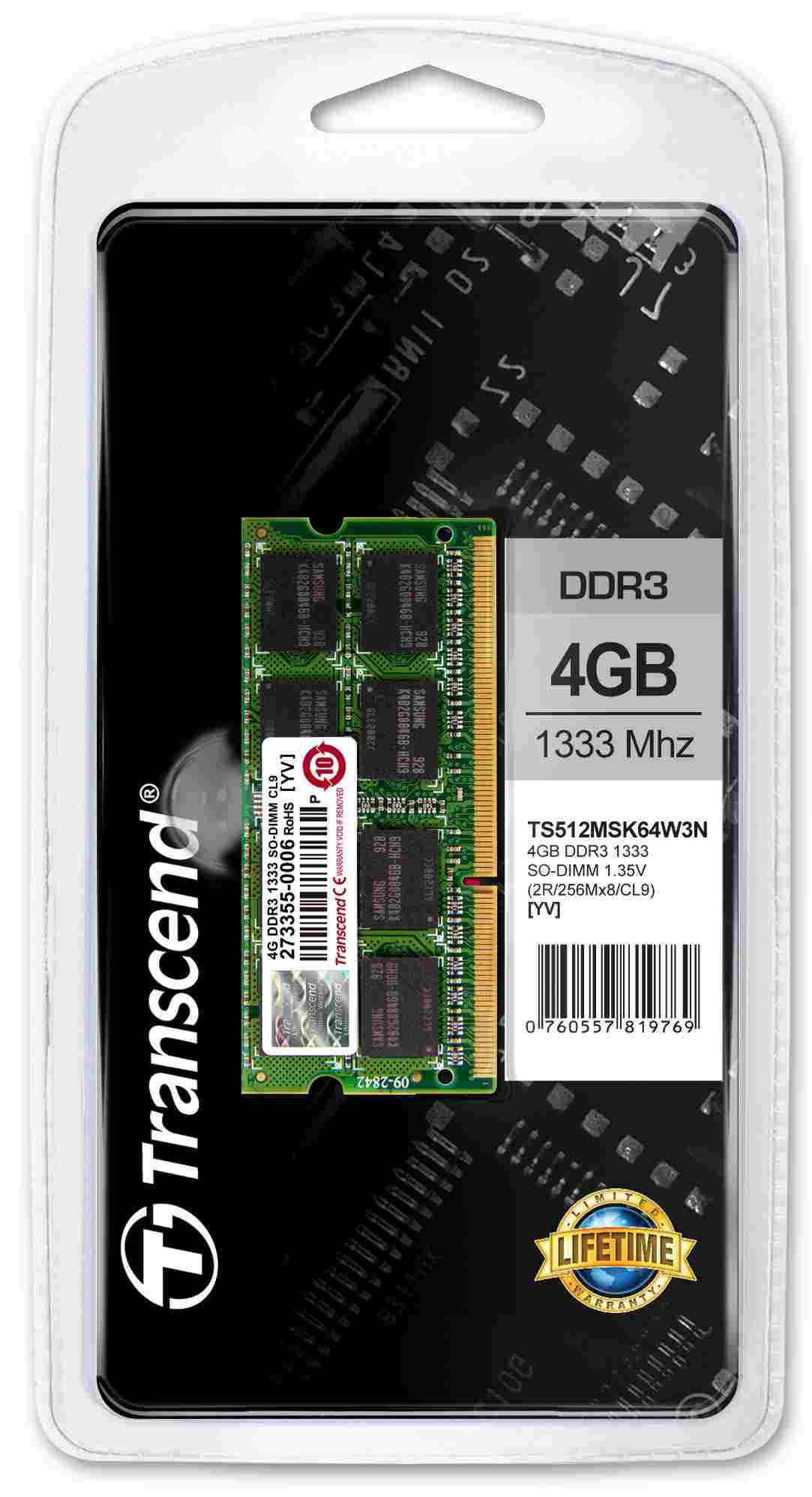 TRANSCEND SODIMM DDR3L 4GB 1333MHz 2Rx8 CL9 Retail
