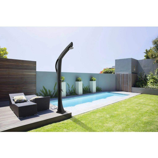 Solární sprcha je ideální zdroj teplé vody bez použití elektřiny. Voda je v solárním zásobníku jednoduše ohřívána sluníčkem až na 60°C. K tomu přispívá i černé provedení sprchy. Sprcha je vybavena mísící pákovou baterií, abyste si nastavili teplotu vody, která vám bude vyhovovat.