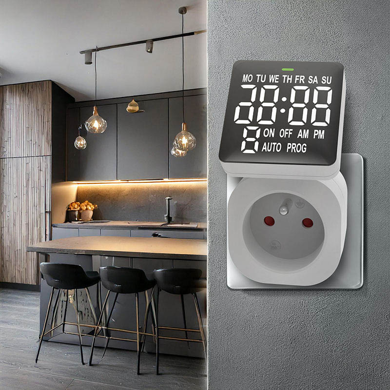 Digitální programovatelný časovač s dětskou pojistkou, který může být výborným pomocníkem pro spouštění Vašich elektrospotřebičů v tu správnou chvíli. Velmi dobře čitelný inverzní displej pro snazší čtení hodnot. Časovač je vybaven možností nastavení pro 8 spínacích cyklů a 15 režimů opakování dle Vámi požadovaných dnů a hodin. Další možností je režim náhodného časového spouštění.