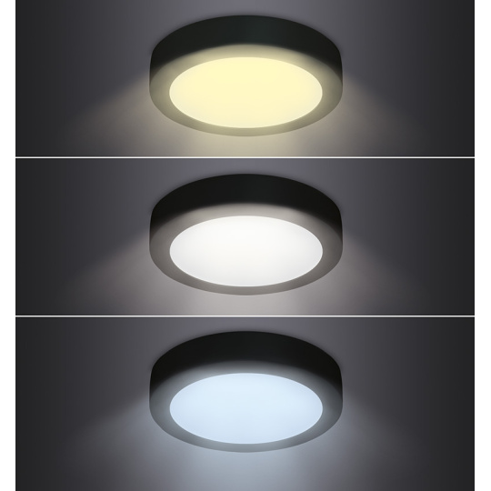 Solight LED mini panel CCT, přisazený, 24W, 1800lm, 3000K, 4000K, 6000K, kulatý, černá barva