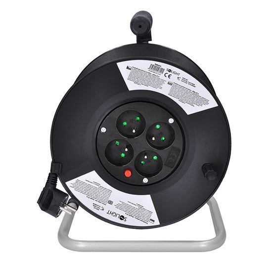 Solight prodlužovací přívod na bubnu, 4 zásuvky, 25m, černý kabel, 3x 1,5mm2