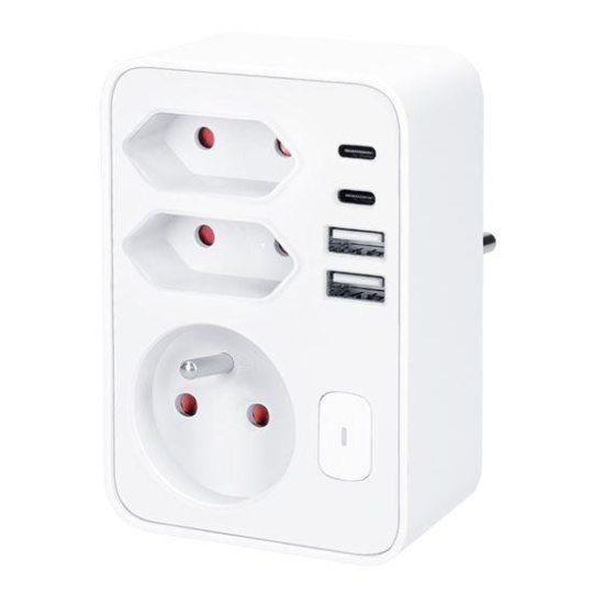 Tři zásuvky (1× 16 A + 2× 2,5 A) zvládnou celkovou zátěž až 3680 W a umožní připojit běžné spotřebiče v obýváku, ložnici nebo pracovně. Zásuvky jsou navíc vybaveny dětskými pojistkami, což zajišťuje bezpečný provoz i v domácnostech s dětmi. Díky dvěma USB-A a dvěma USB-C portům můžete pohodlně nabíjet až čtyři zařízení současně – s celkovým výkonem až 17 W. Perfektní pro veškerou USB elektroniku.