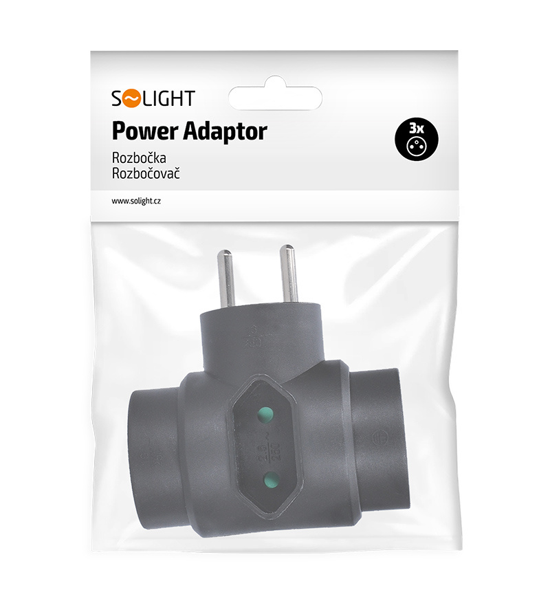 Solight rozbočka, 2,5A + 2x 10A, černá