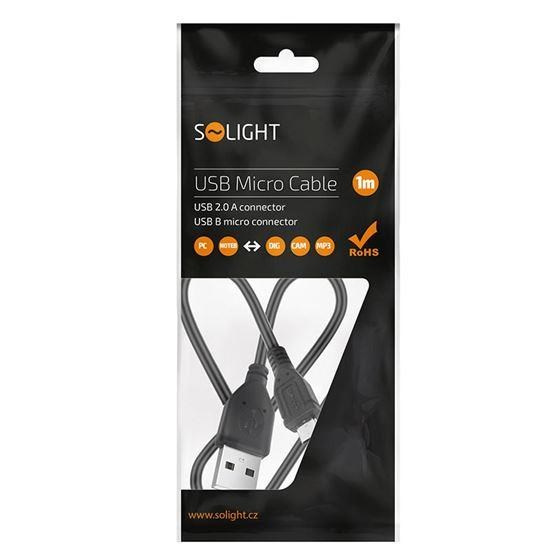 Solight USB kabel, USB 2.0 A konektor - USB B micro konektor, sáček, 1m