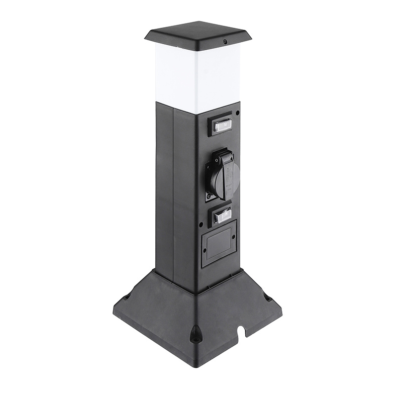 Elektrický rozvodný sloupek s LED svítidlem, stabilní nebo přenosnýpřívod elektrické energie a osvětlení do venkovních prostor, základna s montážními otvory pro pevné povrchy, šroubovací hrot k zapíchnutí do měkkých povrchů, 2 zásuvky max. 16A, 3680W, dětské pojistky a samouzavíratelné krytky proti vlhkosti a prachu.... více