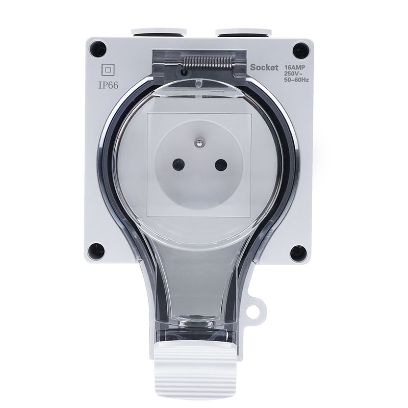 Venkovní zásuvka s průhledným víkem a krytím IP66 nabízí maximální bezpečnost v náročných podmínkách. Je plně chráněna proti prachu, tryskající vodě ze všech směrů a úrazům elektrickým šokem při kontaktu s nástroji či dráty většími než 1 mm. Díky tomuto vysokému stupni ochrany je ideální pro použití v průmyslovém i domácím prostředí, a to i ve vlhkých nebo prašných podmínkách..... více