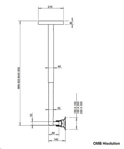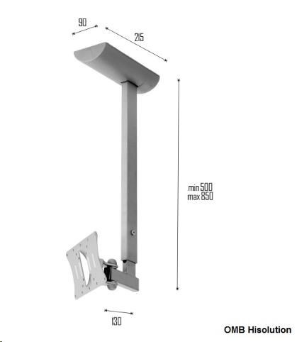 Držák pro zavěšení Tv a monitorů s úhlopříčkou 17-42" na strop, délkové nastavení Cenově dostupný stropní držák Tv nebo monitoru, který je výborného zpracování a kvality. Držák Vám umožní plnohodnotné nastavení pozice obrazovky: otáčení do stran, náklon nebo výškové polohování. Díky krytce je možné i ukotvení za sádrokartonový strop - průchod zakryjete. Kabeláž je možné vést vnitřkem držáku. Na výběr máte ze dvou barevných variant: černý nebo stříbrný. Držák podporuje VESA standardy 75x75 až 200x200, možné je za příplatek rozšíření VESA až na 400x400. Držák je vhodný na všechny typy televizorů i monitorů s hmotností do 20kg, doporučená úhlopříčka je 17-42", s rozšířeným VESA standardem až na 52". OMB Hisolution - stropní držák televize monitoru - originál od OMB Technické údaje: nosnost 20kg na televizory a monitory 17" až 42" sklopný nahoru i dole +20° / -20° otočný do stran +95° / -95° nastavitelná délka ramene 50-85cm vysoká kvalita zpracování možnost vedení kabeláže vnitřkem držáku krytka stropního uchycení barva černá nebo stříbrná záruka 2 roky Stropní držák na televizory a monitory OMB Hisolution černý Stropní držák Tv nebo monitoru OMB Hisolution podporuje VESA standardy: VESA 50x50 VESA 75x75 VESA 100x100 VESA 200x100 VESA 200x200 Při zakoupení rozšíření VESA standardu bude držák podporovat i VESA standardy: VESA 300x200 VESA 300x300 VESA 400x200 VESA 400x300 VESA 400x400 Držák je vhodný na všechny typy televizorů i monitorů, které mají hmotnost do 20kg a které podporují některý z výše uvedených VESA standardů v rozmezí 50x50 až 200x200, při zakoupení rozšíření podporují VESA až 400x400..