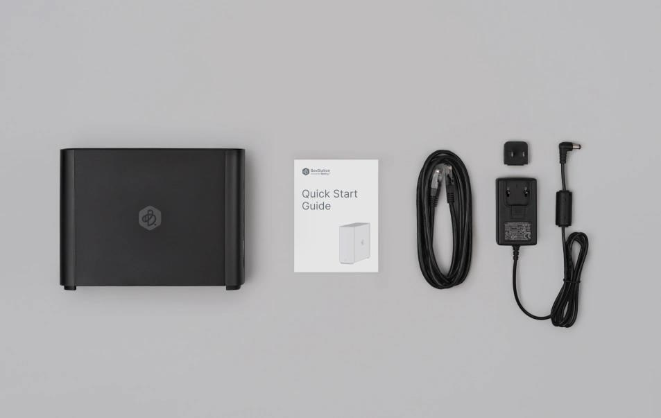 | Obsah balíčku | 1 × hlavní jednotka BeeStation 1 × napájecí adaptér 1 × ethernetový kabel RJ-45 1 × stručná příručka |