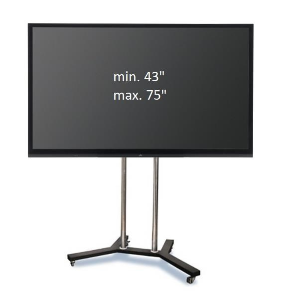 Televizní stojan EDBAK TR1-PWB Mobilní stojan na Tv 43" až 75", nastavení výšky 30-175cm, naklápění +6°/-9°, VESA 100x100 až 600x400, vedení kabeláže, nosnost 80kg Tento profesionální velmi kvalitní televizní stojan je vhodný především na prezentaci pomocí televize nebo monitoru o úhlopříčce 43" až 75". Nastavení Tv stojanu je propracováno do posledního detailu: nastavitelná výška obrazovky, nastavitelný náklon obrazovky, korekce roviny obrazovky (výborné v případě nerovnosti podlahy), systém skrytého vedení kabeláže, pojezdová kolečka s aretací. Stojan je velmi stabilní a bezpečný. V případě potřeby je možné dokoupit police na příslušenství, horní polici na kameru, podstavce místo koleček. Ideální pro videokonference a prezentace pomocí obrazové techniky. Televizní stojan EDBAK TR1-PWB Technické údaje: maximální zatížení 80kg na Tv a monitory 43" až 75" VESA standard 100x100 až 600x400 výška stojanu 180cm nastavitelná výška TV dle potřeby po celé výšce stojanu možnost náklonu TV +6° / -9° rozměry podstavy 1127x694mm (ŠxH) systém skrytého vedení kabeláže pojezdová kolečka s brzdou skvělá stabilita a bezpečnost možnost zakoupení police na příslušenství, police na kameru, přihrádky na katalogy, pevné podstavy profesionální výrobek - nejvyšší kvalita záruka 5 let Stojan na televize a monitory ideální na videokonference a prezentace Edbak TR1-PWB Televizní stojan Edbak TR1-PWB podporuje VESA standardy: VESA 100x100 VESA 200x100 VESA 200x200 VESA 300x200 VESA 300x300 VESA 400x200 VESA 400x300 VESA 400x400 VESA 600x400 maximální rozteč VESA pro uchycení Tv 600x460 Na televizní stojan EDBAK TR1-PWB je možné zavěsit všechny typy, značky a velikosti televizorů, které mají hmotnost do 80kg a které podporují kterýkoliv z výše uvedených VESA standardů. Velikost úhlopříčky televize nebo monitoru není podstatná a nehraje žádnou roli. Skleněná polička na příslušenství ke stojanu Edbak TRS2Horní polička na kameru nebo projektor 250x200mm Edbak CH5 Možnost dokoupení příslušenství: polička na příslušenství (až 3ks na stojan) horní polička na kameru pevné podstavce - výměna za pojezdová kolečka.