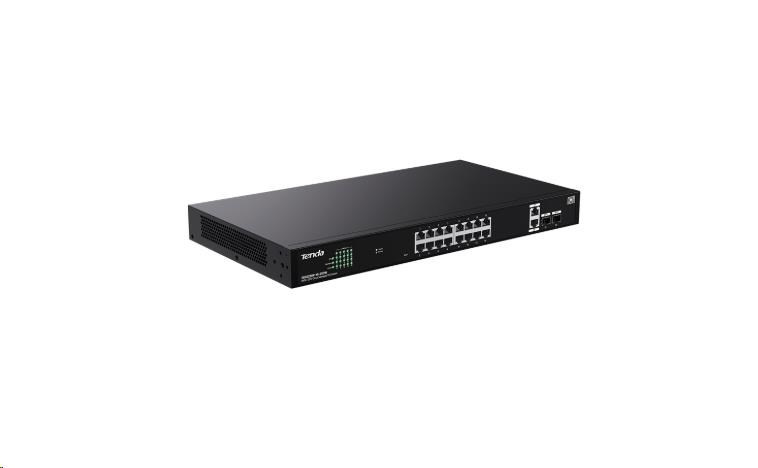 - Rozhraní: (18) 1GE RJ45 portů, (2) 1GE SFP porty