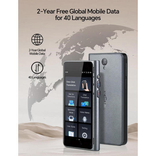 - Objevujte svět bez datových starostí. Dvouletý bezplatný datový tarif eliminuje potřebu Wi-Fi a zajišťuje nepřerušované online překlady kdekoli na světě.