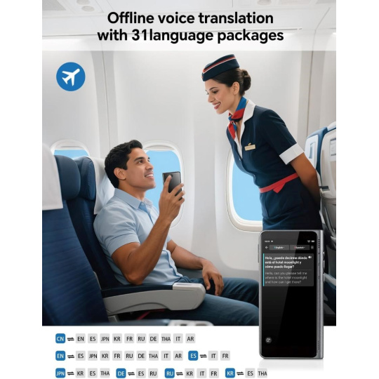 - Už žádné jazykové bariéry, i off-line. Díky technologii AI Edge-Model a 31+ off-line jazykovým balíčkům překládá spolehlivě i bez připojení k internetu.