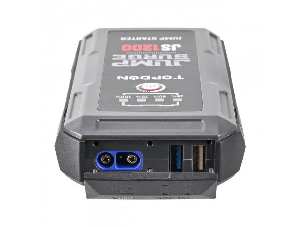 Maximálně spolehlivý a výkonný car jump startér Jump Surge 1200 s kapacitou 10000mAh (37Wh) a startovacím proudem až 1200A.