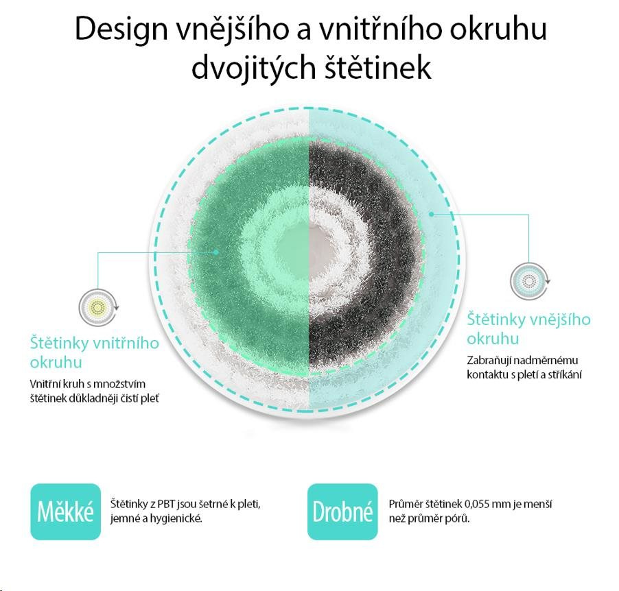 • 0,055 mm PBT kartáček pro odstraňování mazu, nečistot a make-upu