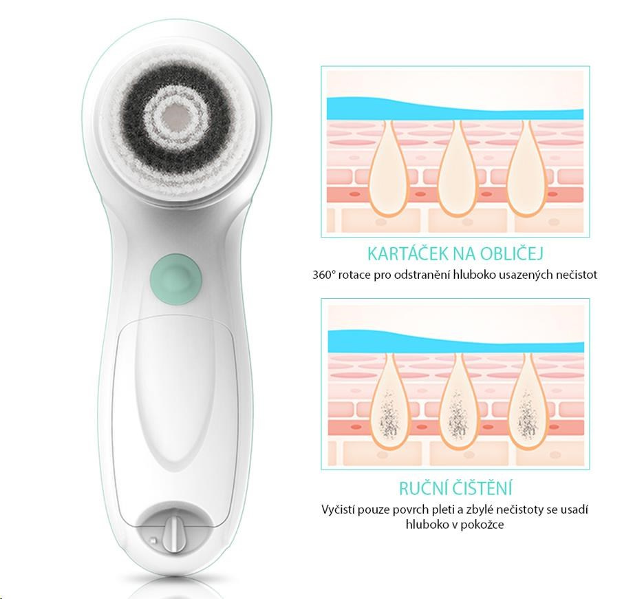 • 2 pracovní rychlosti - nízká rychlost pro jemné čištění a vysoká rychlost pro hloubkové čištění.