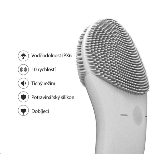 Každodenní čisticí plocha je vybavena jemnými silikonovými dotykovými body, které čistí obličej bez poškození pokožky.