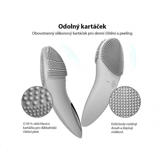 • Oboustrannou čisticí hlavu lze použít pro každodenní čištění a exfoliaci.