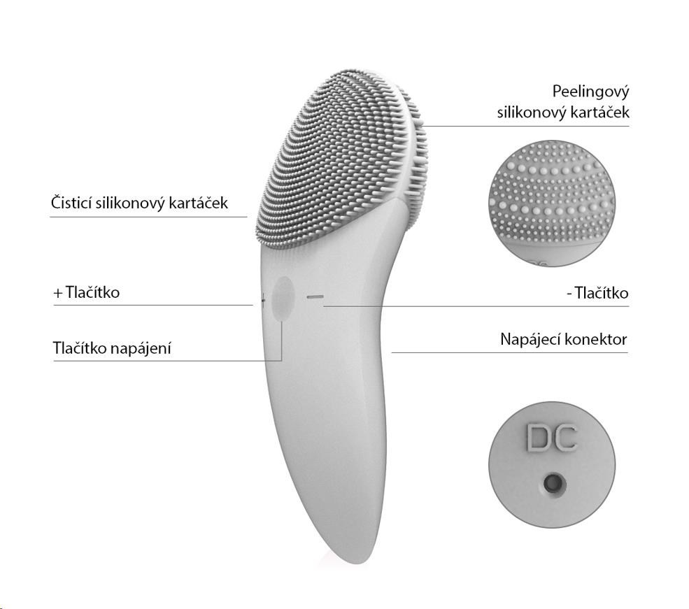 Každodenní čisticí plocha je vybavena jemnými silikonovými dotykovými body, které čistí obličej bez poškození pokožky.