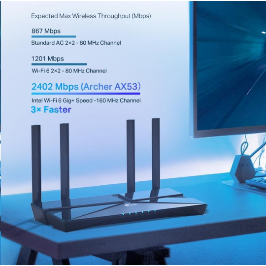 TP-Link Archer AX53 OneMesh/EasyMesh WiFi6 router (AX3000, 2,4GHz/5GHz, 1xGbEWAN, 4xGbELAN)