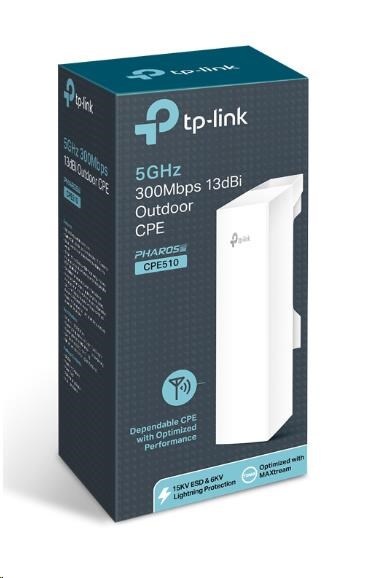 Venkovní jednotka TP-Link CPE510 s parametry 5 GHz 300 Mbit/s 13 dBi byla navržena pro cenově hospodárná řešení venkovních bezdrátových sítí. Umožňuje centralizovanou správu a je tak flexibilním a ideálním řešením pro aplikace typu point-to-point, point-to-multipoint a venkovní pokrytí bezdrátovou sítí. Díky výkonu na profesionální úrovni a uživatelsky přívětivému designu je jednotka CPE510 perfektní volbou pro firemní i domácí uživatele.