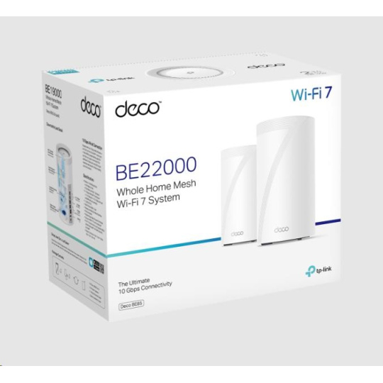 TP-Link Deco BE85(2-pack) WiFi7 Mesh(BE22000,2,4GHz/5GHz/6GHz,1x10GbELAN/WAN,1xSFP+/10GbELANcombo,2x2,5GbELAN/WAN,1xUSB)