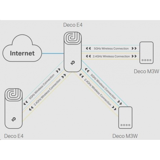 - Deco E4 poskytuje rychlé a stabilní spojení rychlostí až 867 Mb/s a spolupracuje s hlavními poskytovateli internetových služeb (ISP) a modemem.