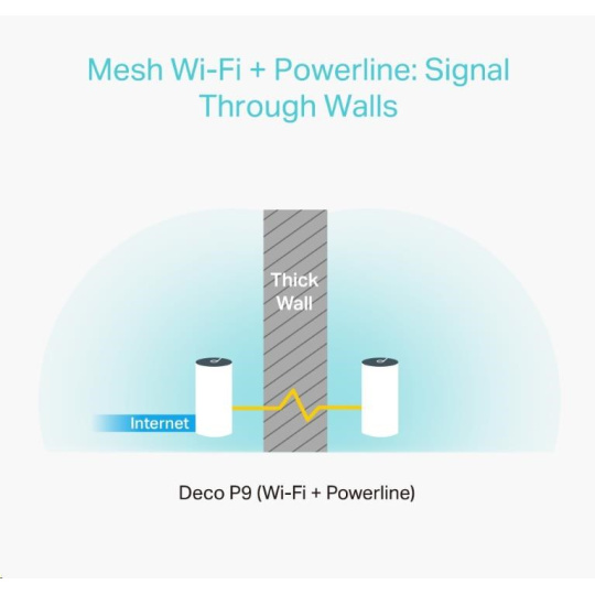 Deco P9 kombinuje duální Wi-Fi a powerline pro vytvoření silnější mesh sítě. Technologie Powerline využívá elektrické rozvody vašeho domu k vytvoření silnějšího propojení mezi jednotkami Deco tím, že snižuje dopad stěn a jiných překážek na signál a poskytuje ještě vyšší rychlosti sítě a skutečně bezproblémové pokrytí .