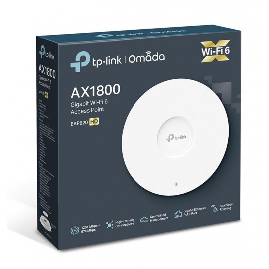 TP-Link EAP620 HD V3.20 OMADA WiFi6 AP (AX1800,2,4GHz/5GHz,1xGbELAN,1xPoE-in)