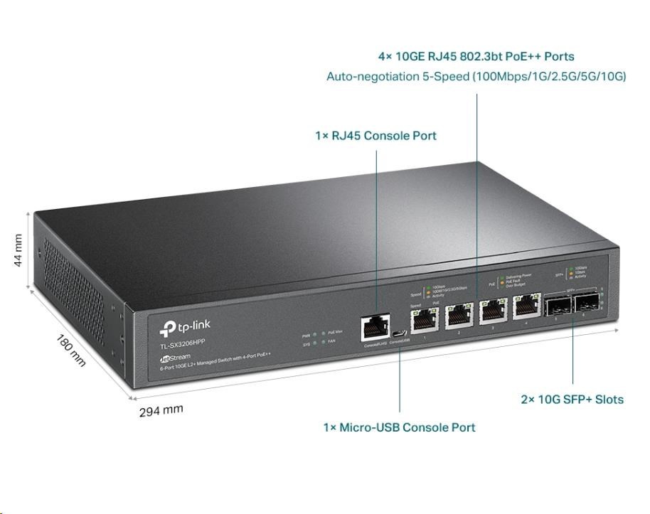 TP-Link OMADA switch SX3206HPP (4x10GbE,2xSFP+,4xPoE++,200W,2xconsole)