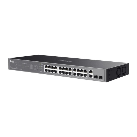 | Interface | • 26× 10/100/1000 Mbps PoE+ RJ45 Ports (support 802.3af PoE and 802.3at PoE+) • 2× Gigabit SFP Slots • Auto-Negotiation/Auto MDI/MDIX |