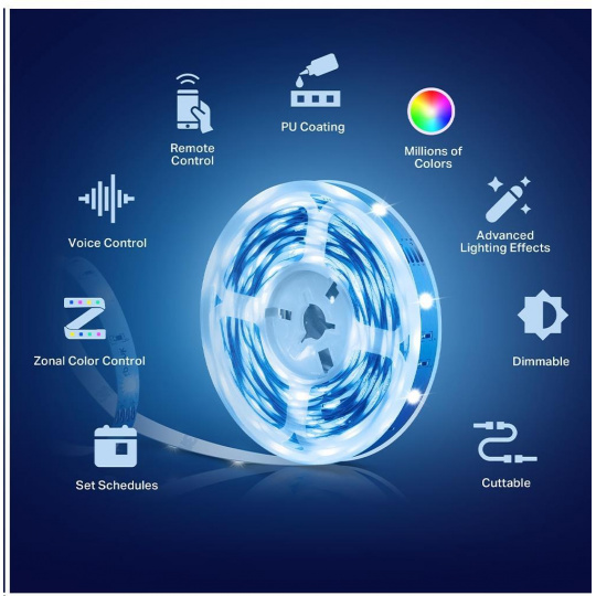 - Hlasové ovládání – pomocí jednoduchých hlasových povelů ovládejte světelný pásek přes Alexu nebo Asistenta Google.