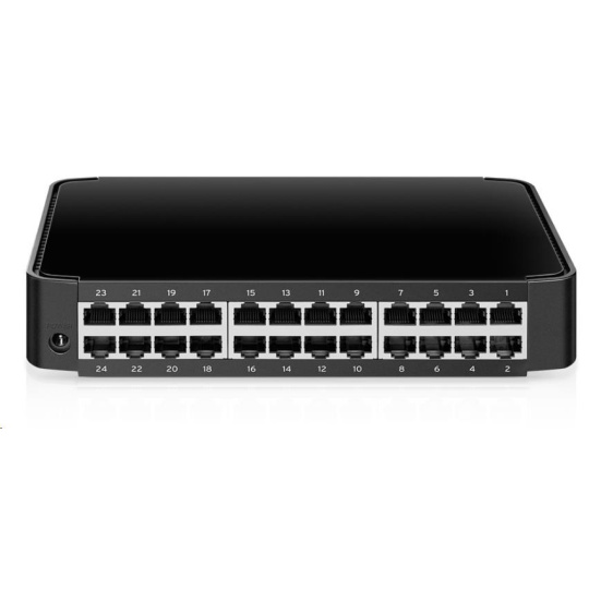 - 24 portů 10/100 Mbit/s RJ45 s podporou automatického vyjednávání a Auto MDI/MDIX