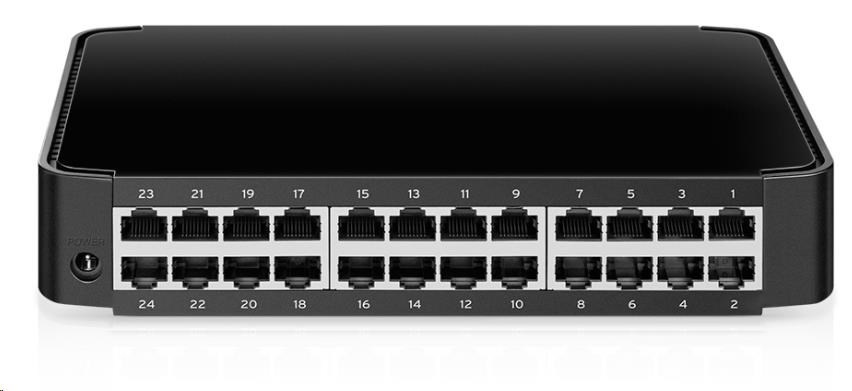 - 24 portů 10/100 Mbit/s RJ45 s podporou automatického vyjednávání a Auto MDI/MDIX