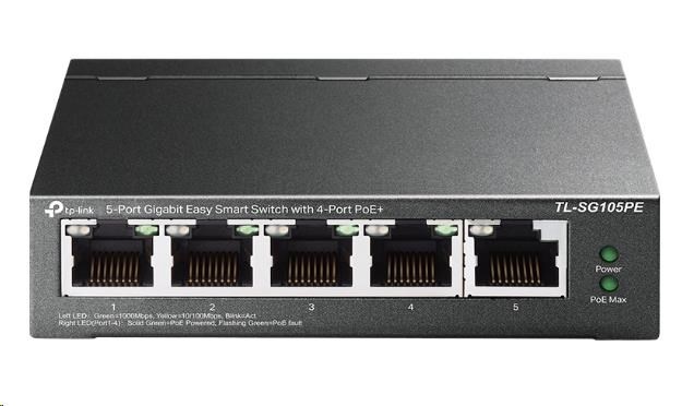 TP-Link Easy Smart switch TL-SG105PE (5xGbE, 4xPoE+, 65W, fanless)