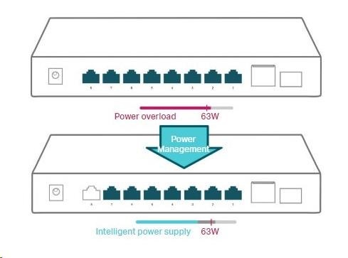 - Vysoký PoE rozpočet napájení s až 30W na každý PoE port a 63W na všechny PoE porty