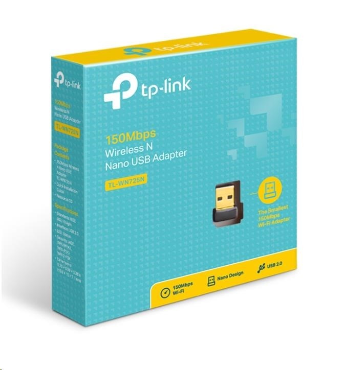 | Package Contents | 150Mbps wireless N Nano USB adapter TL-WN725N Resource CD Quick Installation Guide |