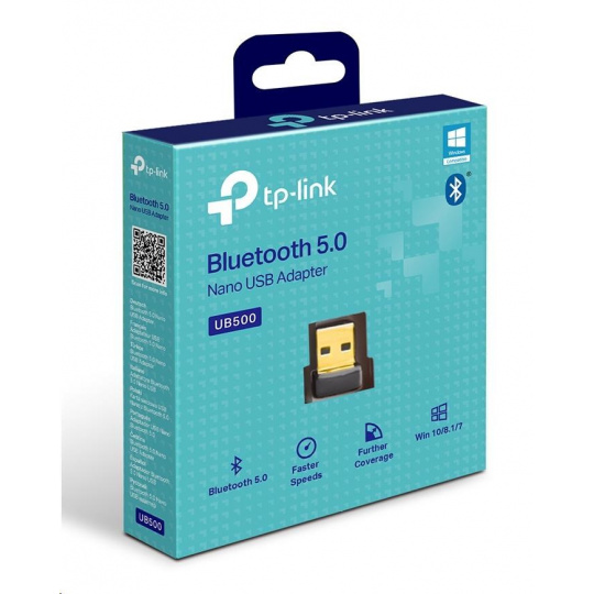 - UB500 vybaví váš počítač pokročilou technologií Bluetooth 5.0, která přináší mnohá vylepšení oproti starší verzi. Podporuje vyšší rychlosti připojení a má delší dosah než technologie Bluetooth 4.0, takže mezi počítačem a Bluetooth zařízeními je navázáno silnější a spolehlivější bezdrátové připojení. K dalším výhodám patří i nižší spotřeba energie a větší dosah vysílání.