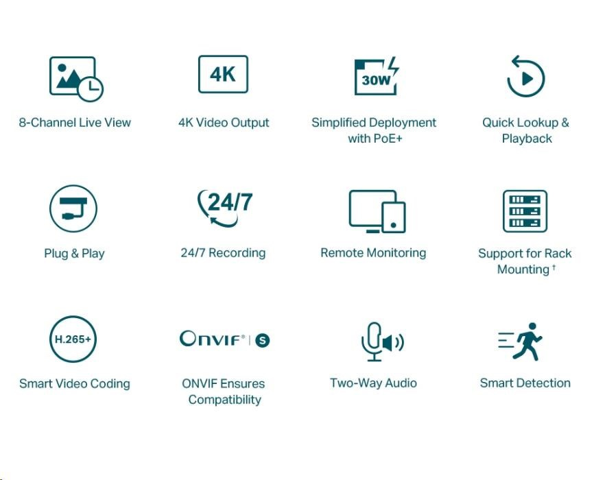 - ONVIF zajišťuje kompatibilitu: Snadno přidejte IPC od VIGI a dalších značek a vytvořte výkonnou a rozmanitou síť díky bezbariérové ??kompatibilitě.