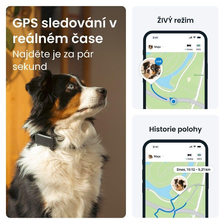 • GPS tracker pro psy funguje s aplikací, která je k dispozici pro systémy iOS i Android