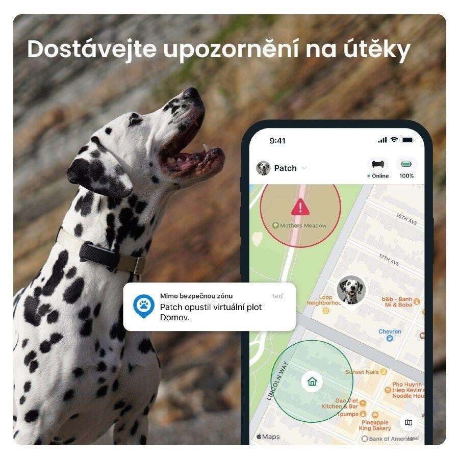 • Živé GPS sledování a upozornění na útěky