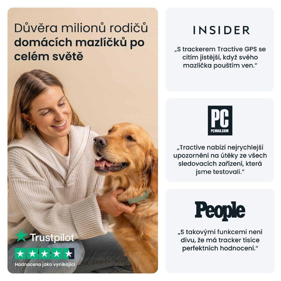 GPS tracker Tractive vás informuje, jak moc se váš pes pohybuje, spí a štěká. Můžete nastavit cíle pohybu, kontrolovat Skóre kondice a porovnávat svého psa s jinými plemeny.Odolná konstrukce