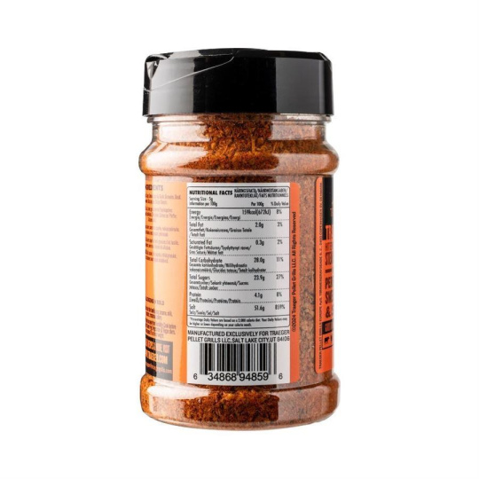 Naše koření Traeger Rub představuje dokonalou směs sladké, slané a pikantní chuti, která zvýrazní chuť jakéhokoli masa, na které ho nanesete. Pikantní česnek se snoubí s bylinkovými tóny bazalky a oregana a jemnou kouřovou chutí papriky a chilli papriček, které doplňují vše od libového kuřecího masa až po výraznou hovězí hrudí.