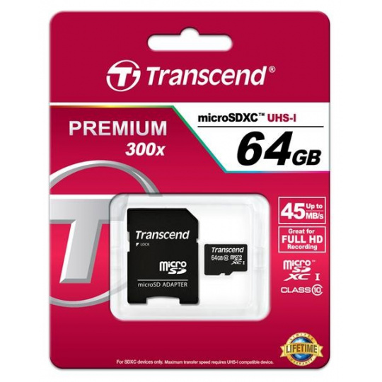 TRANSCEND MicroSDXC karta 64GB Class 10, UHS-I (45MB/s)