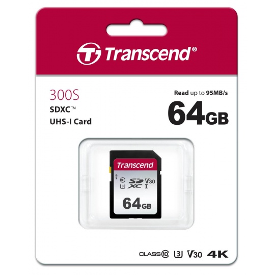 TRANSCEND SDXC karta 64GB 300S, UHS-I U3 V10 (R:100/W:25 MB/s)