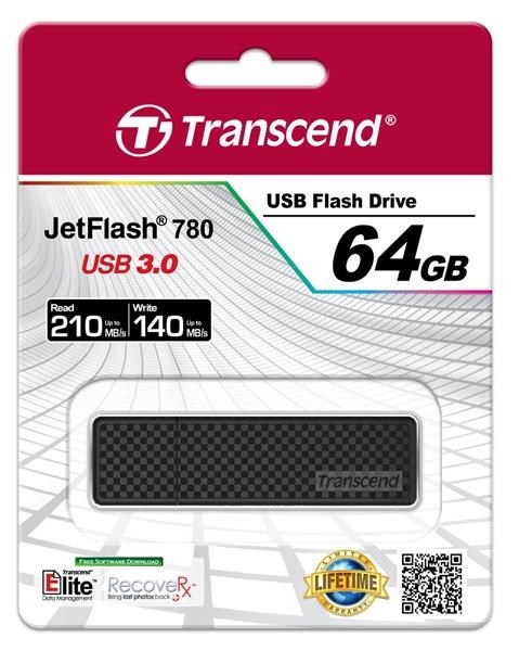 TRANSCEND Flash Disk 64GB JetFlash®780, USB 3.0 (R:210/W:140 MB/s) černá